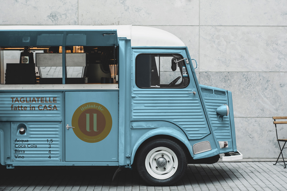 Italiatelle is a little truck found driving around major European cities, offering hand-made tagliatelle dishes dressed in a variety of typical Italian sauces. Perfectly combining the “street food” and “gourmet” concepts with a quality dish served in the open, Italiatelle is the result of a unique sensorial experience unveiling the truest and most genuine Italian tastes, abroad.