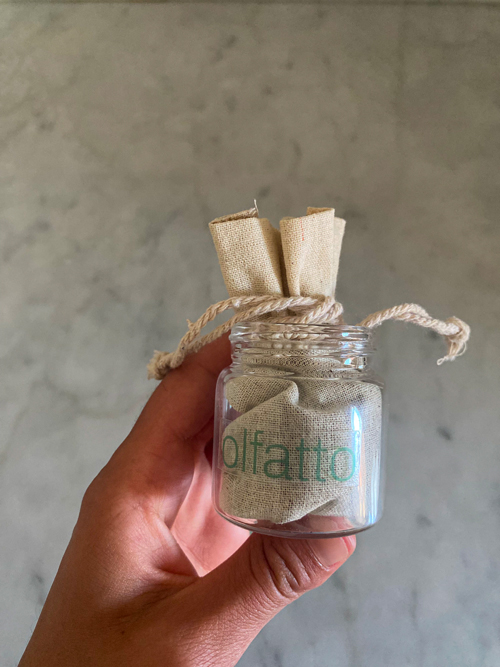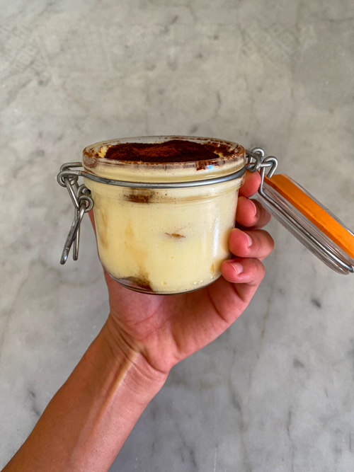 The chosen dish (Tiramisù) is kept secret from participants. Each one of the four ingredients selected is linked to a sense, to whom a color is in turn associated. Also, ingredients are hidden inside specific objects, on which a sticker indicating the sense to be stimulated is placed.