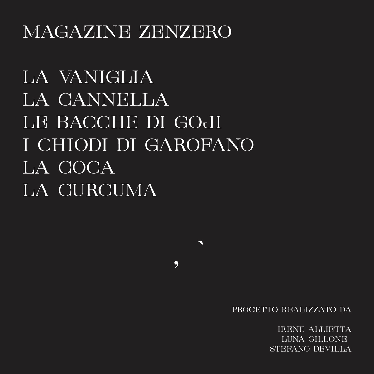 The “Zenzero” magazine deals with the beauty and history of a selection of foods, with a particular focus on spices, aiming to arise interest in this sector/field/area.